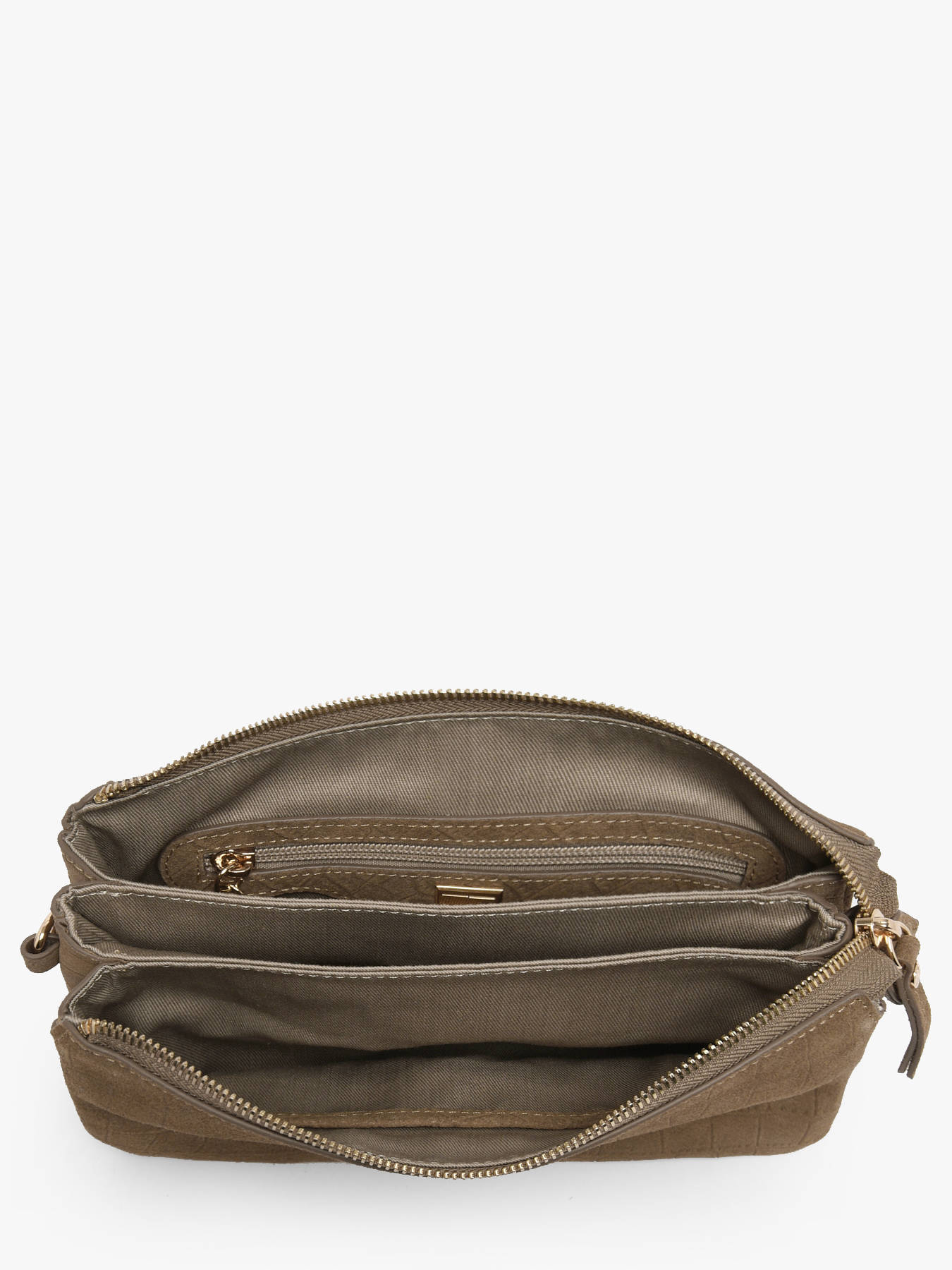 Le sac bandoulière EQUESTRE CROCO d'Etrier se distingue par son cuir de vachette velours imprimé crocodile, un mariage audacieux de textures qui apporte sophistication et charme sauvage à chaque modèle. Ce sac allie élégance et fonctionnalité avec sa fermeture zippée, son rabat à fermoir et sa bandoulière réglable et amovible, vous offrant plusieurs façons de le porter en toute simplicité. À l'intérieur, trois compartiments bien organisés vous permettent de ranger vos essentiels avec soin, complétés par une poche simple et une poche zippée pour une meilleure organisation. Les finitions dorées apportent une touche raffinée qui sublime ce sac, parfait pour celles qui cherchent à allier style intemporel et caractère affirmé. Le sac Equestre Croco est un véritable bijou pour votre garde-robe, parfait pour accompagner vos looks au quotidien avec une allure chic et sauvage.